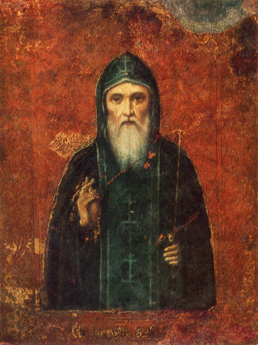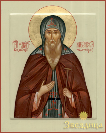 Relatările scrise îl menționează pe Sfânt ca fiind "un ieromonah, “un ascet” al Schitului Jabinsk. Acest Schit a început ca o mânăstire de obște în 1585, când Starețul Onufrie primea o cartă de la Țarul Teodor Ivanovici, acesta din urmă acordând „starețului Onufrie așezarea fortificată Jabinsk din Karmania, pentru o mânăstire și teren arabil... pajiștea bisericii din satul Spihov... i s-a dat o pădure de pini, pentru lumânări și tămâie, și i s-a dat Pădurea Neagră, pentru a o tăia pentru clădirile mănăstirii și pentru lemne de foc pentru nevoile monahale, nu pentru vânzare”.