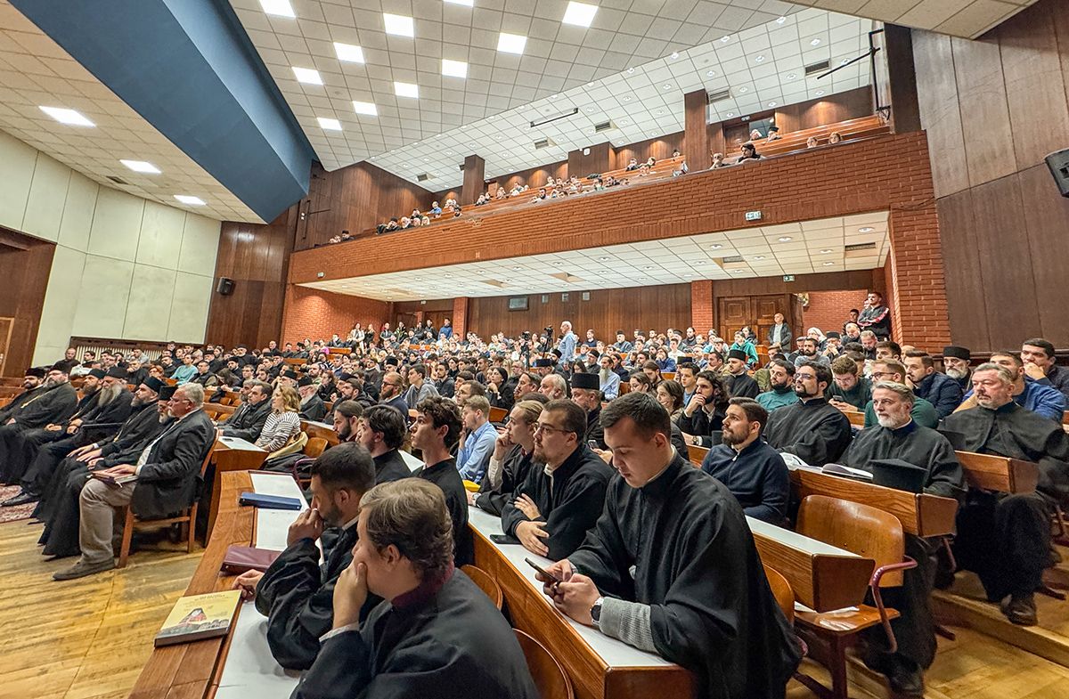 Continuându-și prezentarea, prof. Vukašinović a vorbit despre provocările teologiei contemporane și despre pericolul reducerii acesteia la formalism academic sau discurs ideologic. El a reamintit că teologia are sens doar atunci când rămâne înrădăcinată în viața Bisericii. Potrivit lui, utilizarea greșită a conceptelor teologice, separarea științei de Tradiție și transformarea teologiei într-o tehnică fără conținut duhovnicesc duc la pierderea roadelor teologiei și la golirea ei de sens. În schimb, teologia Avvei Iustin, întemeiată pe rugăciune, ascetism și experiență liturgică, rămâne un exemplu de teologie corectă ce naște viață. Roadele unei astfel de teologii, așa cum a subliniat el, se văd în lăcașuri și mânăstiri, și nu în catedrele goale ale facultăților de teologie occidentale.